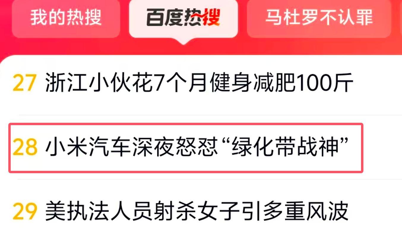 “小米汽車深夜怒懟‘綠化帶戰神’”充上百度熱搜